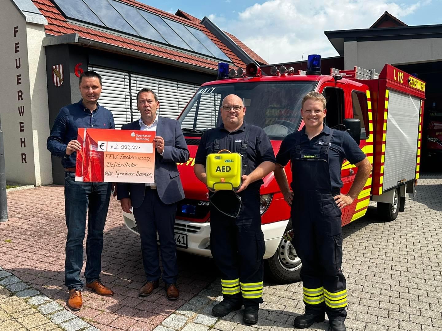 Wir durften heute zusammen mit den Kameraden der Freiwilligen Feuerwehren Priegendorf und Reckenneusig jeweils eine Spende der Sparkasse Baunach in Empfang nehmen. Die Spende wurde sogleich in einen AED (Automatisierter Externer Defibrillator) samt Außengehäuse investiert. Für diesen guten Zweck übernahm die Stadt Baunach gerne die restlichen Kosten.