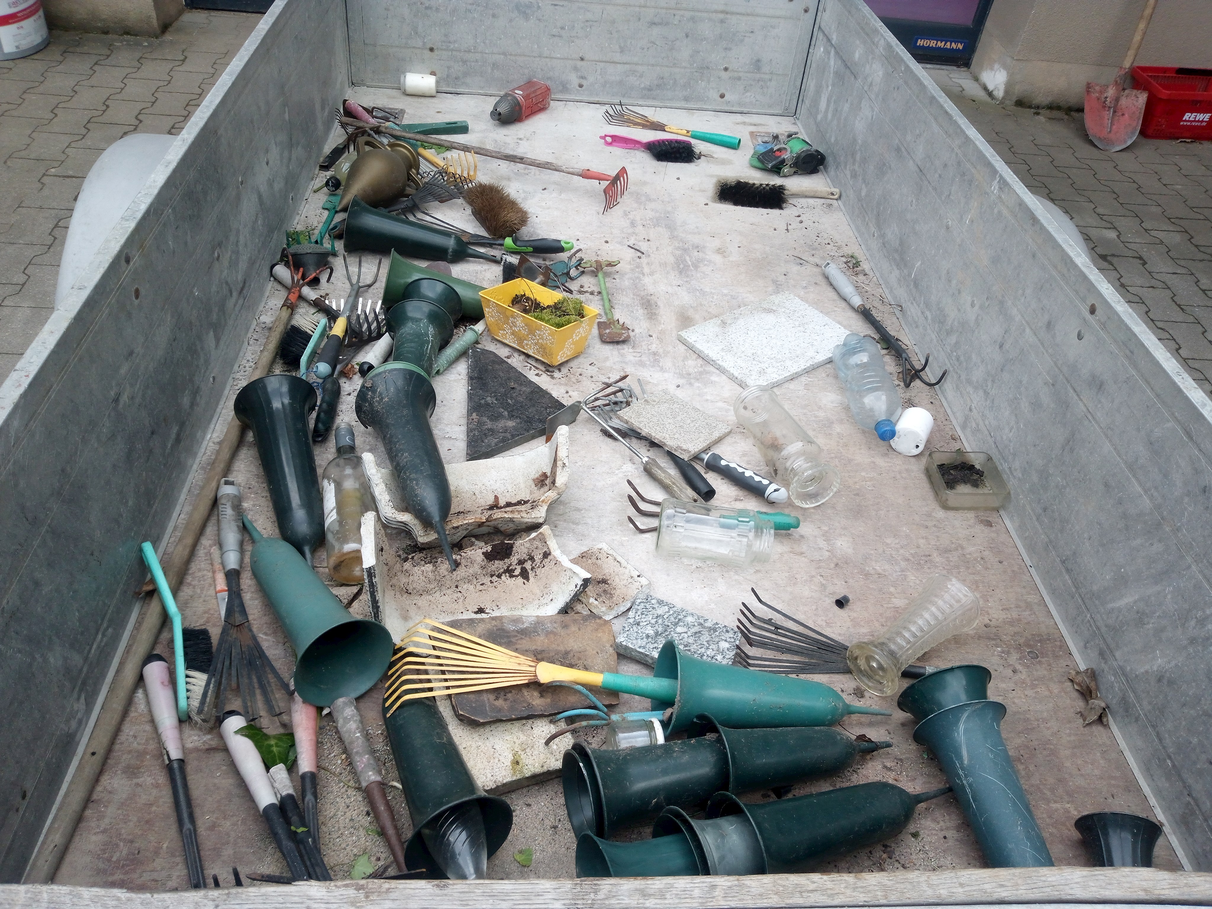 Das Friedhofszubehör wurde im Streugutbehälter zur Abholung am Nebeneingang unterhalb der