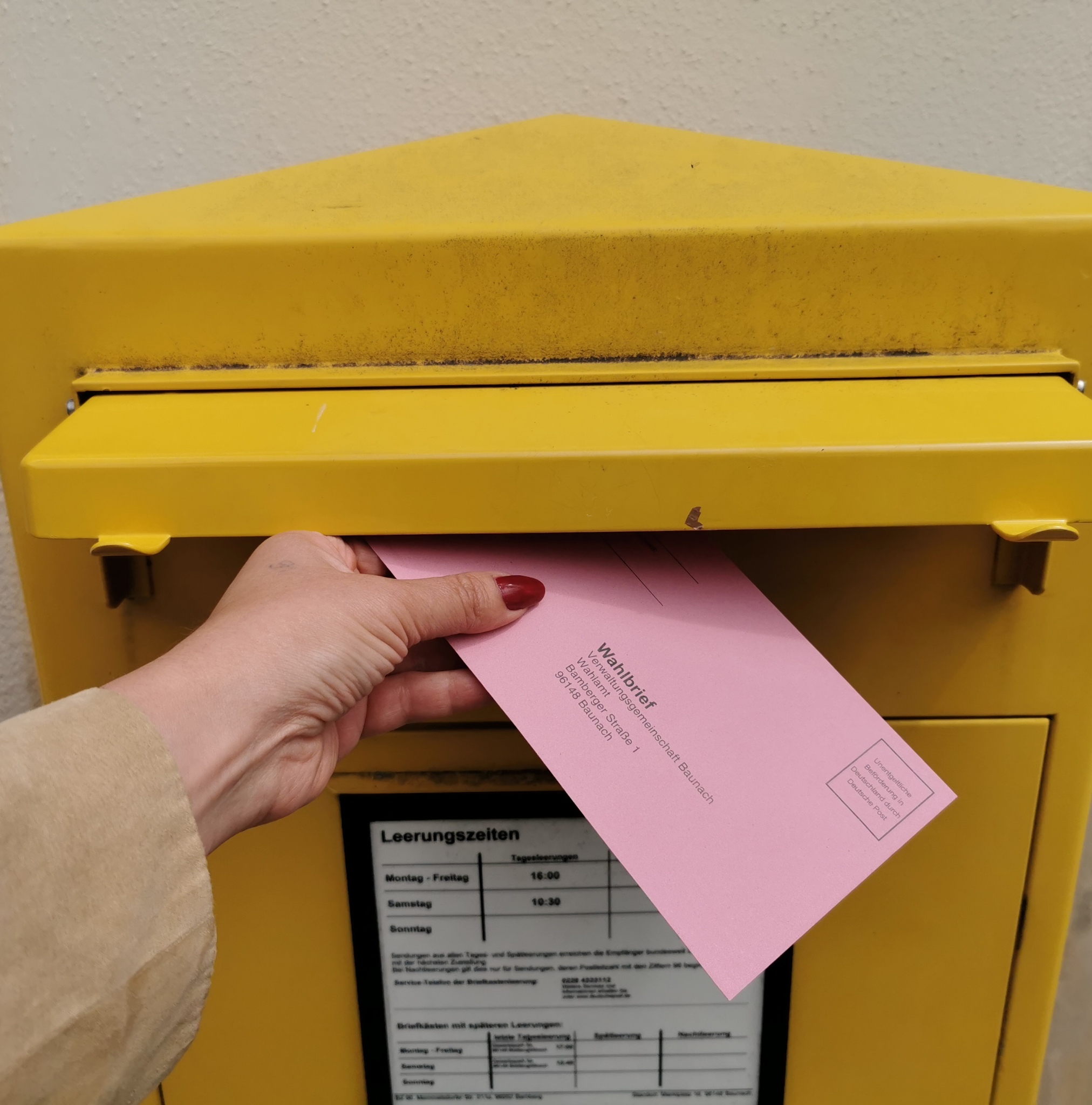 Für die Europawahl ist ein Online Briefwahlantrag nur noch bis zum 03.06.24, 23.59 Uhr möglich, um den rechtzeitigen Postversand zu gewährleisten. Persönlich können Sie in der Woche vor der Wahl noch die Unterlagen im Rathaus Baunach abholen. Bitte denken Sie daran, dass alle Wahlbriefe rechtzeitig in der VG Baunach eingehen müssen. Der spezielle Briefkasten dafür befindet sich hinten links vom Rathauseingang Baunach und ist ausgeschildert.