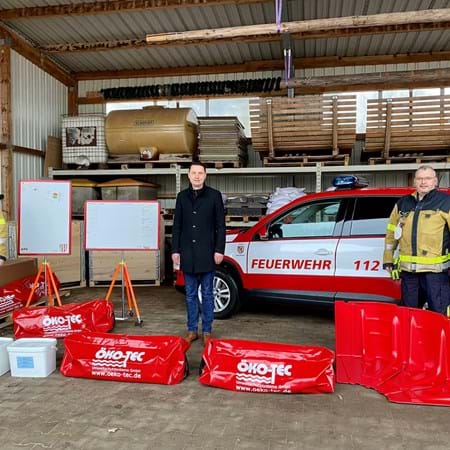 Das Doppelkammerschlauch System von Öko-Tec, einem Anbieter der sich auf Hochwasserschutz spezialisiert hat, dient als Sandsack Ersatzsystem im Kampf gegen Überschwemmungen und ist flexibel einsetzbar. Es wird mit Wasser befüllt und hat so eine hohe Standfestigkeit.